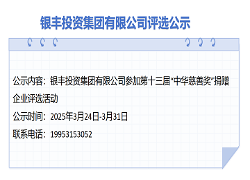 銀豐集團(tuán)第十三屆“中華慈善獎”慈善項目申報公示