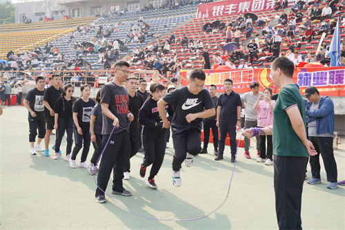 每一次成功都離不開良好的團隊合作,本屆運動會除傳統(tǒng)田賽、徑賽項目以外,趣味比賽也是精彩紛呈。拔河、點球射門、踢毽子、跳大繩以及今年新增項目“豐彩龍舟”在活潑有趣的熱鬧氛圍里體現(xiàn)了銀豐人的通力協(xié)作,良好配合。各代表隊配合默契,邁著統(tǒng)一的步伐奮力沖向終點。