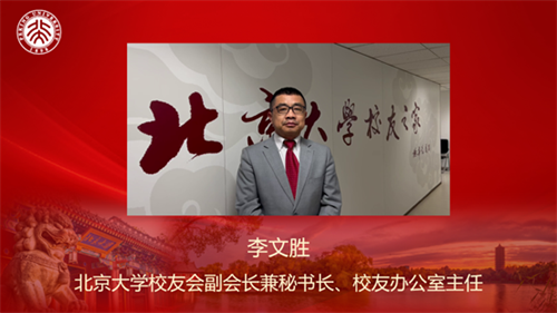 北京大學校友會副會長兼秘書長、校友辦公室李文勝主任因參加北京大學校友會第十次會員代表大會未能到達現(xiàn)場,發(fā)來了熱情洋溢的視頻賀詞。李文勝充分肯定了山東北大校友會近年來的工作,期盼校友會能繼續(xù)踐行北大使命,匯聚校友力量,更好地服務山東高質量發(fā)展。